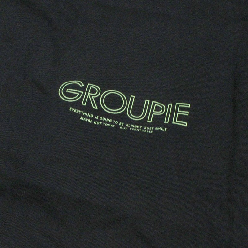 胸元には花プリントと後ろにはポジティブなメッセージ入りのロゴをプリント。