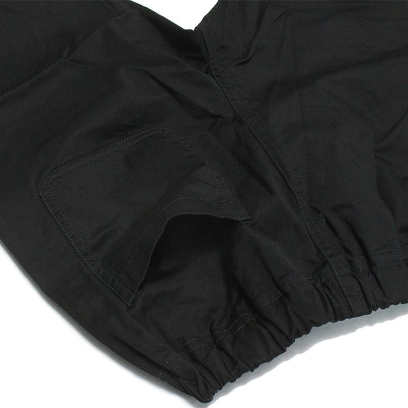 ストレッチツイルを使用したテーパードパンツ。