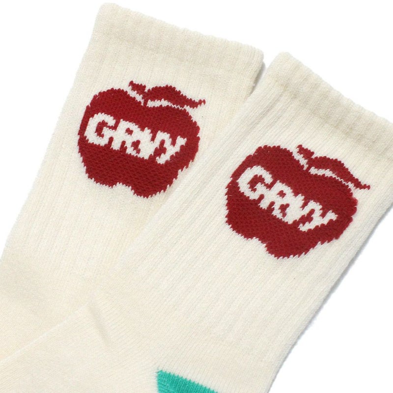GROOVY定番モチーフのリンゴ+ロゴ入りのソックス。