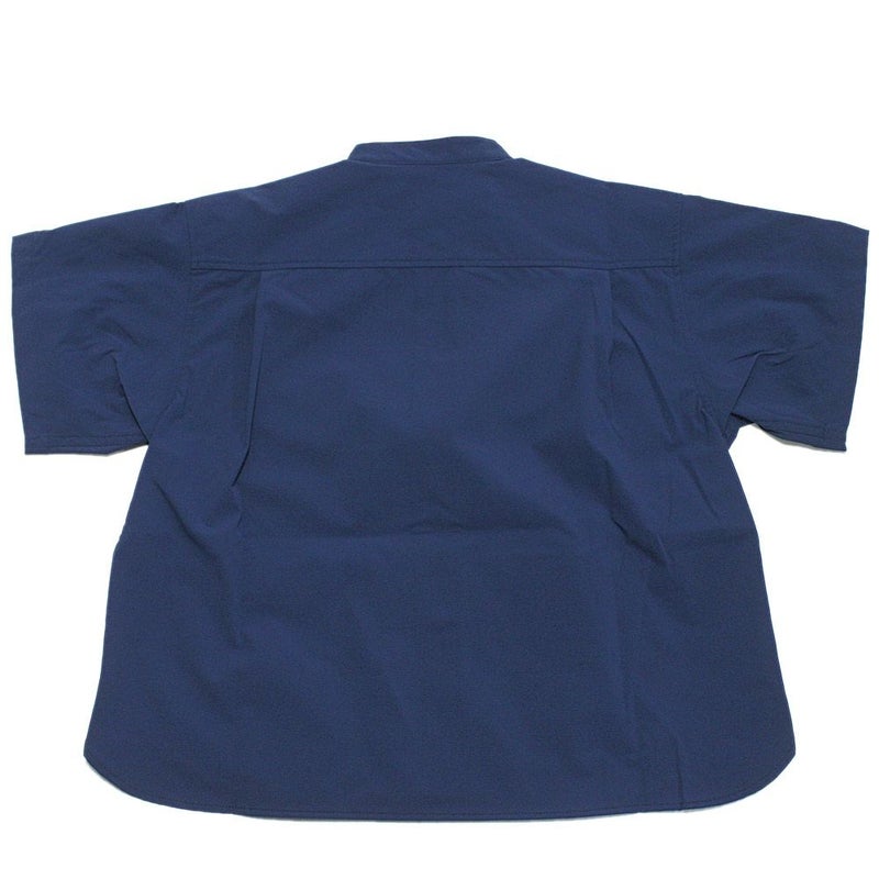 裾の大きなポケットが特徴的なバンドカラーシャツです。