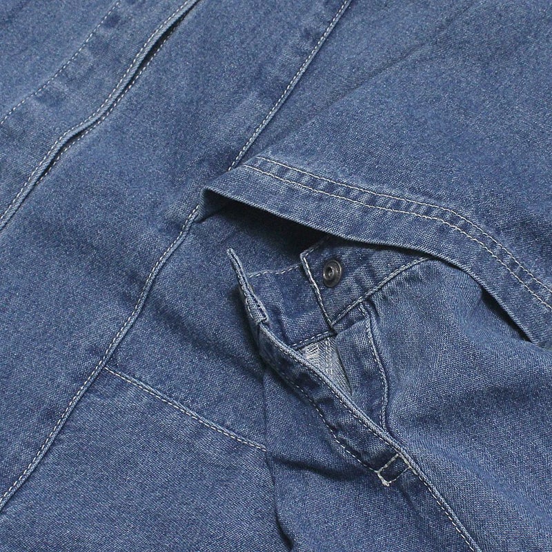 8ozデニムを使用した、ワイドシルエットのスタンドカラージャケット。