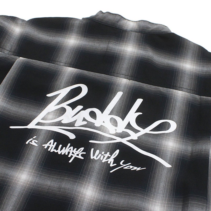 左胸にスケボー犬(BUDDY)の刺繍ワッペン、バックにはストリート感のあるグラフィティロゴをプリントをレイアウト。