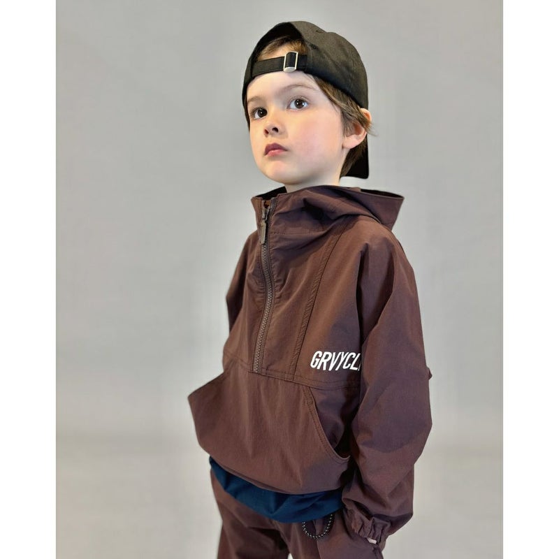 [グルーヴィーカラーズ] ナイロン 4WAY ストレッチ プルオーバー 7BR茶