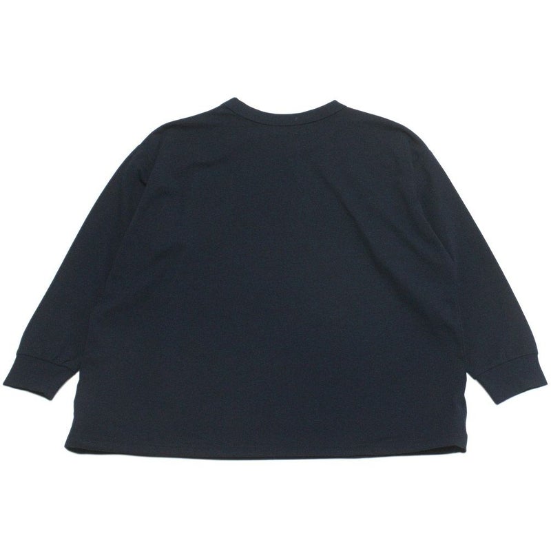 袖口はリブ仕様で、定番Tと比べ身幅と肩幅にゆとりがあるワイドシルエット。
