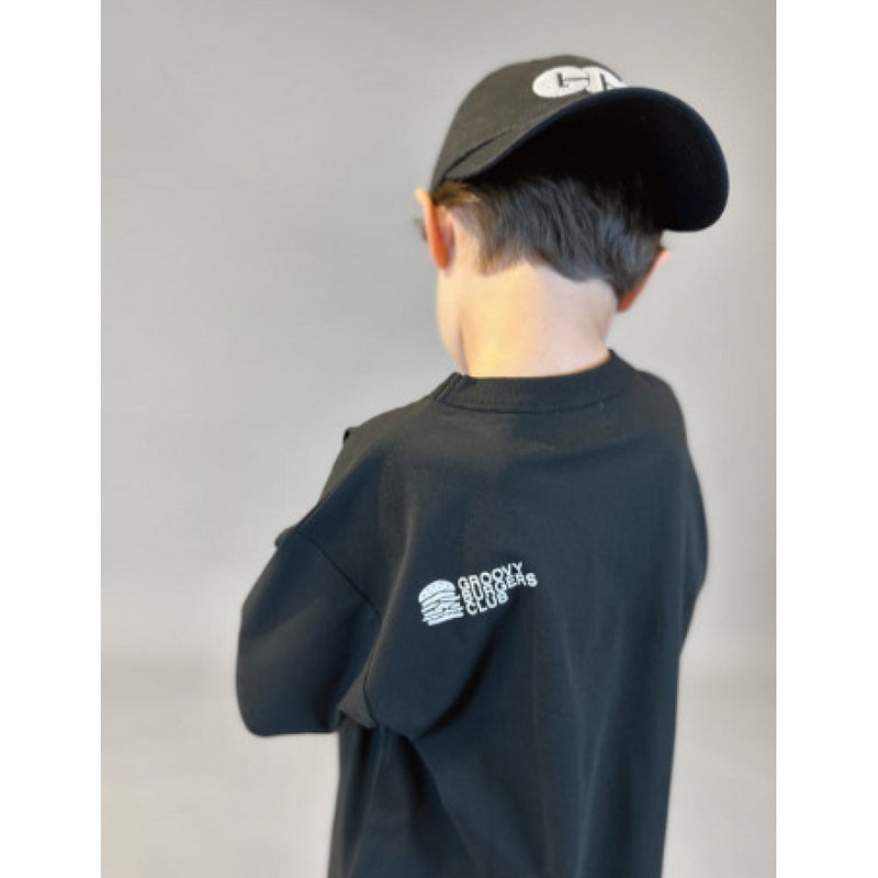 フロントはハンバーガー好きが集まる架空のサークル「GROOVY BURGERS CLUB」のプリント。