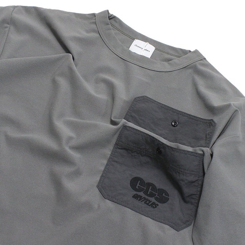 胸ポケットと裾をナイロン地で切り替えた2トーン配色のTシャツ