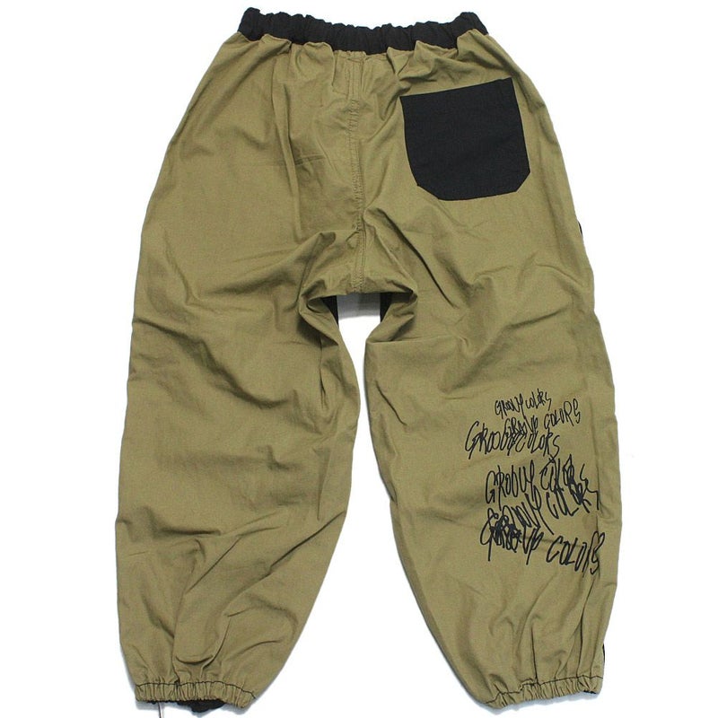 膝にタックを取り、裾をゴムで絞ることで、膝下にかけてゆったりとしたシルエットのボリューム感が特徴。