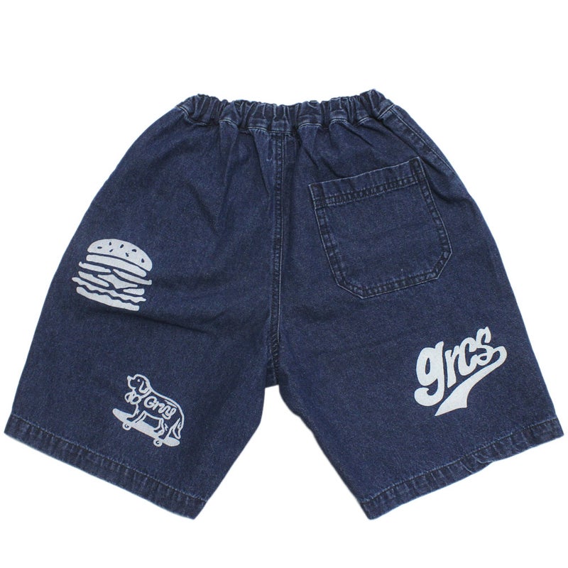 大きめのブランドアイコンのプリントが、夏のスタイリングに映える薄手のデニムショーツです。