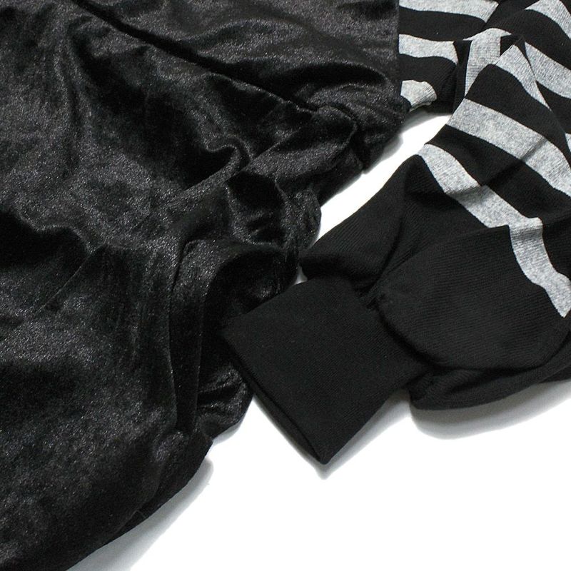 クラッシュベロアの光沢感に反してカジュアルな度詰め天竺のロンTとの組み合わせたデザインがポイント。