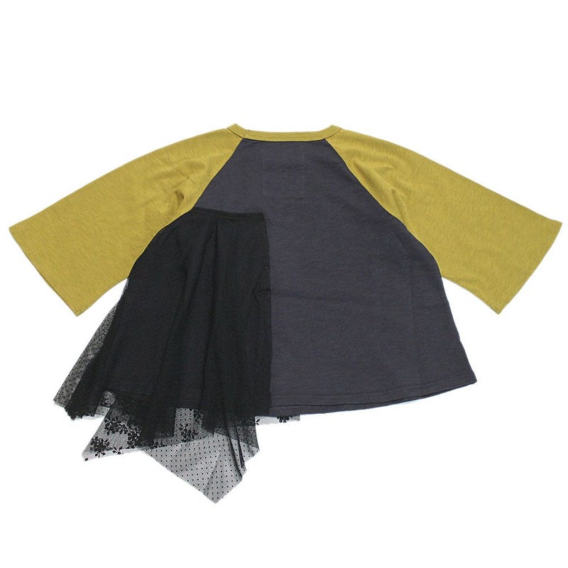 フラワーとドット柄のチュールをアシンメトリーに配置。