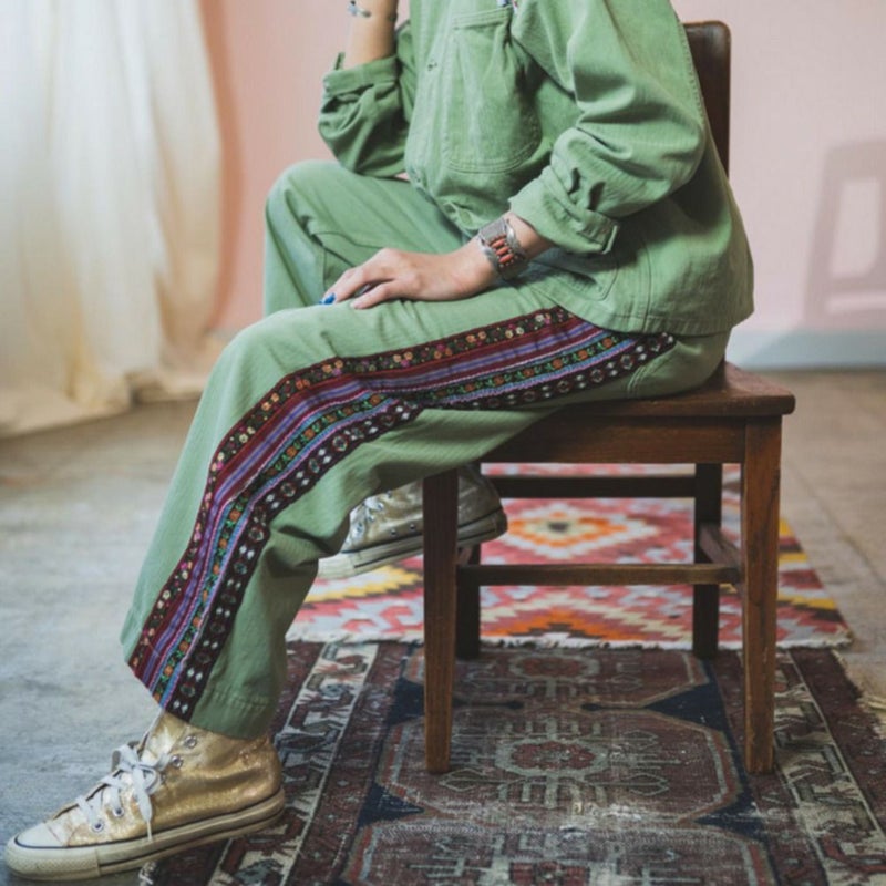 40~50年代のUS NAVY N-3トラウザーのディティールを取り入れた太めのロングパンツ。