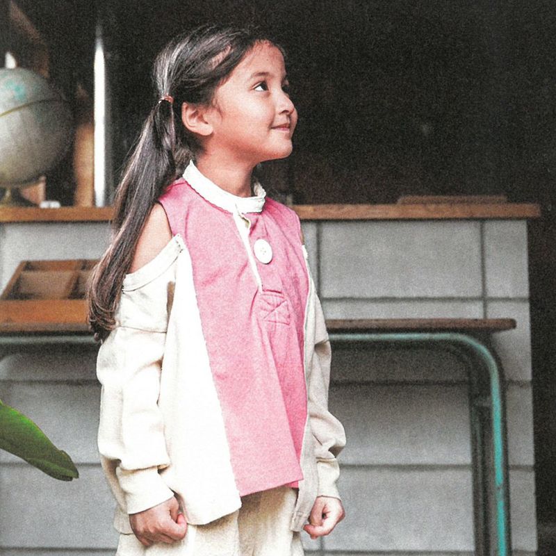 身頃と袖のカラーの切り替えがアクセントに。