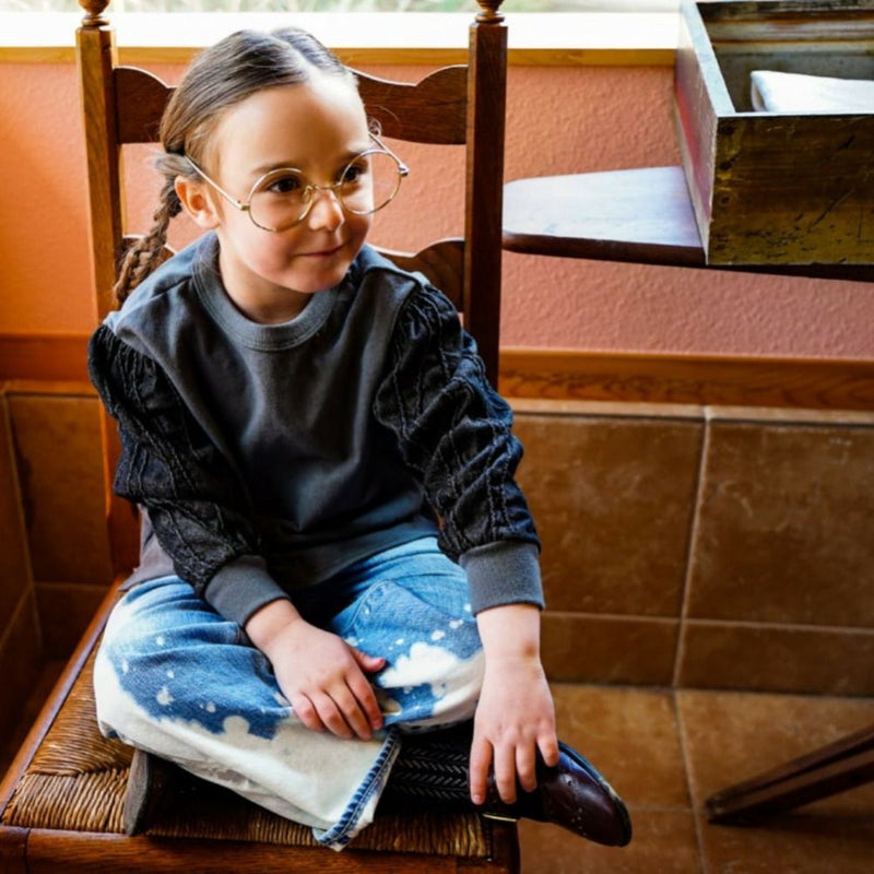 タック刺繍の入った珍しいライトオンスのデニムを袖にドッキング。