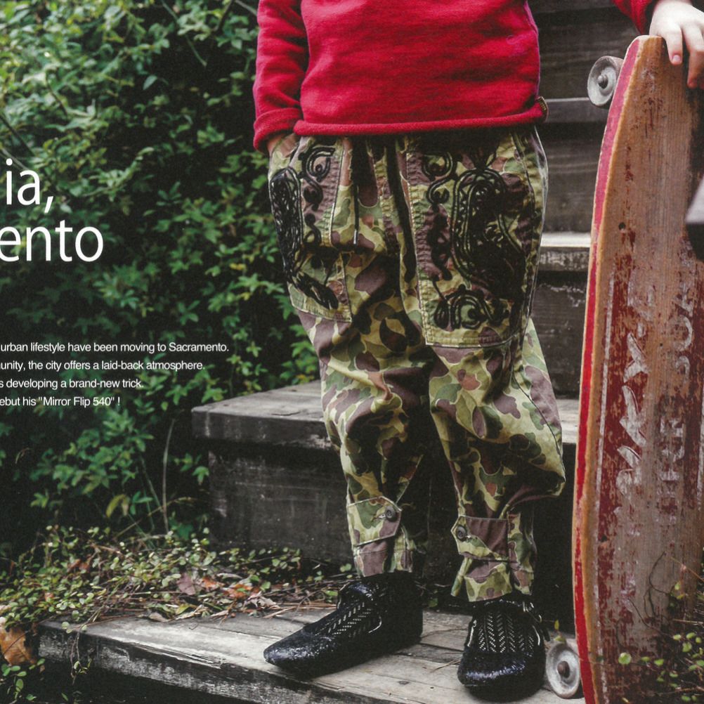 コーディネートの主役になるカモフラ柄のパンツ。
