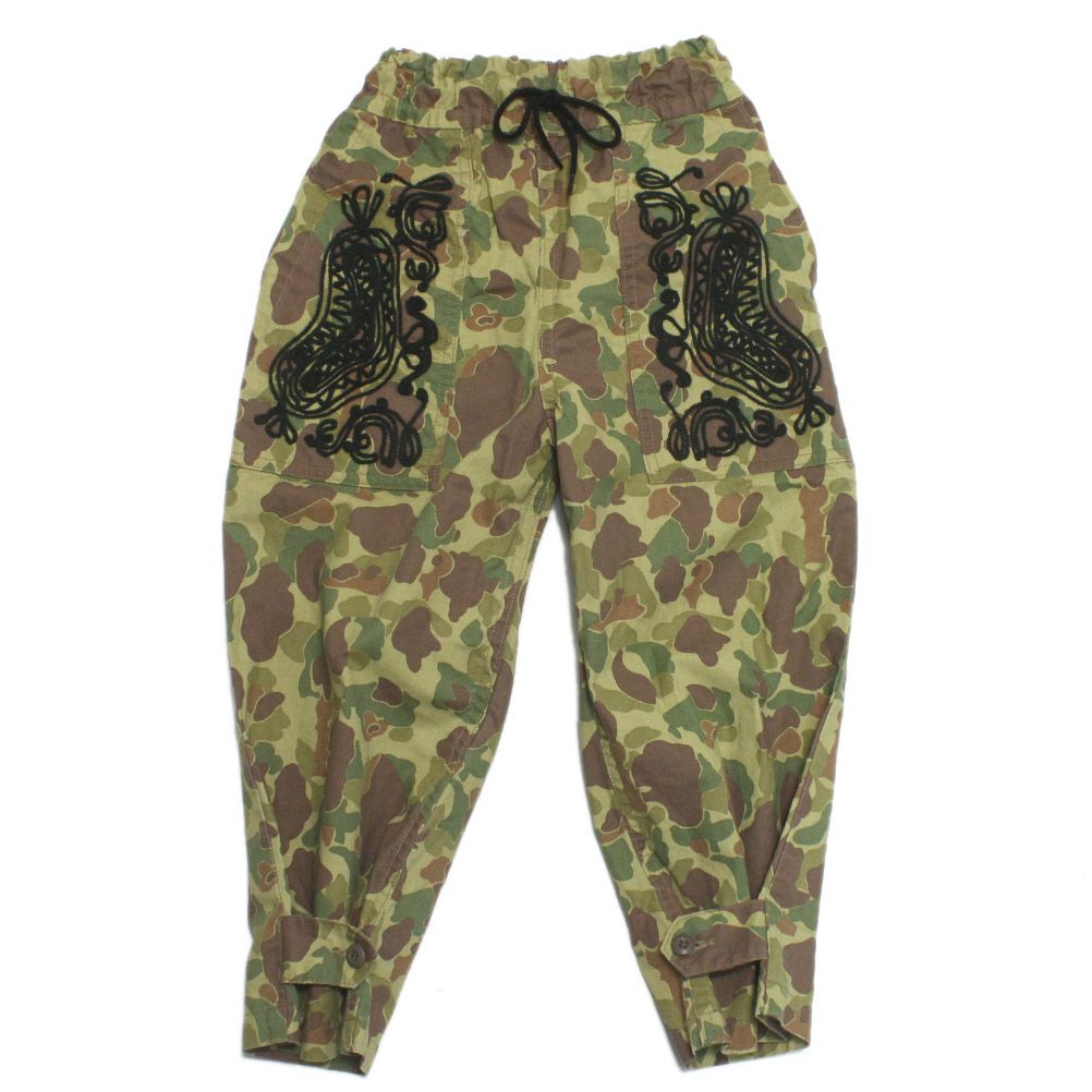 太めのイージーパンツにフォークロアな刺繍を。