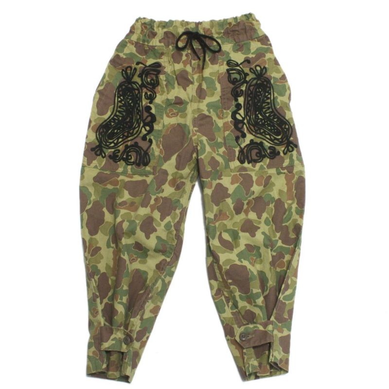 太めのイージーパンツにフォークロアな刺繍を。