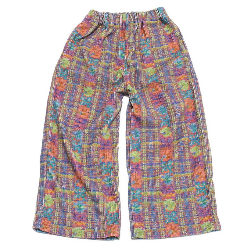 お花のようなプリントが、チェックのようにも見えるデザインが特徴的な総柄パンツ。