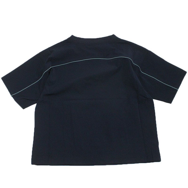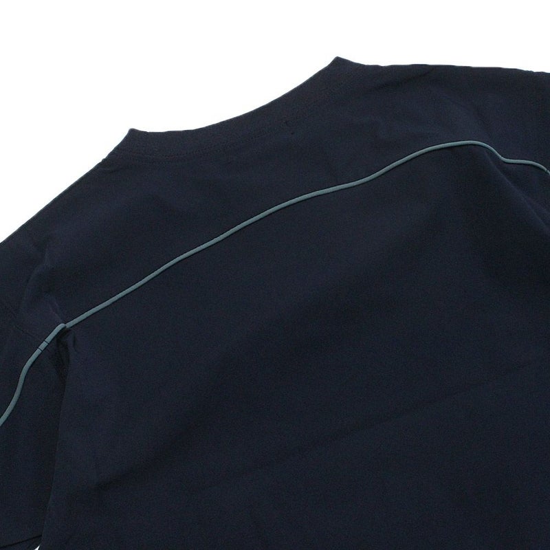 袖先から後ろ身頃に縫い込んだ配色のテープがスポーティなイメージに。配色は控えめにしているのでタウンユースもオススメです。
