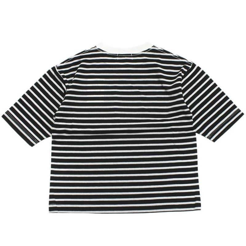 [ミニマル] ボーダー配色ポケットビッグT クロ(80)