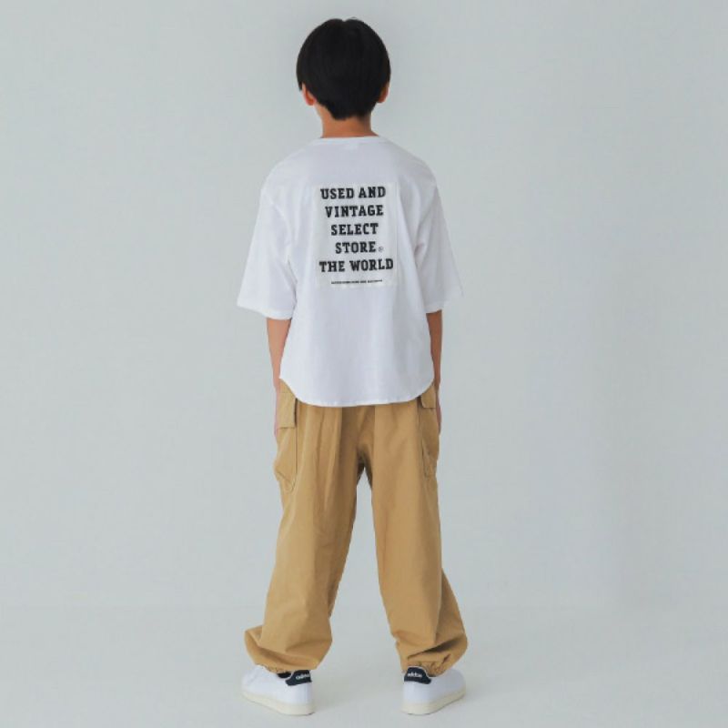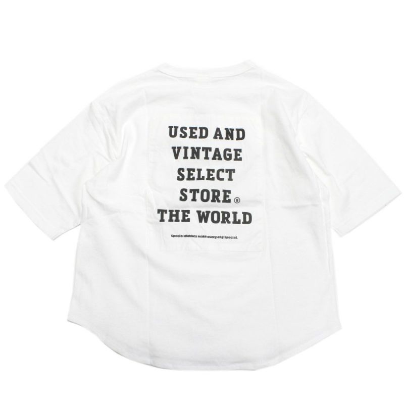 バックはボックスデザインの布帛が縫い付けられた目を惹くTシャツです。