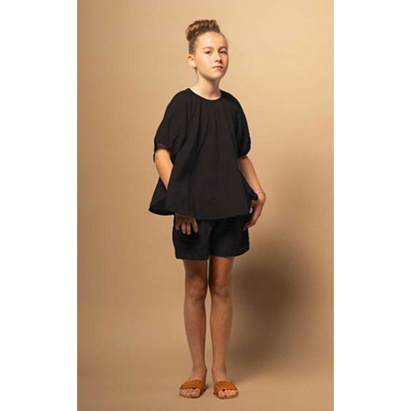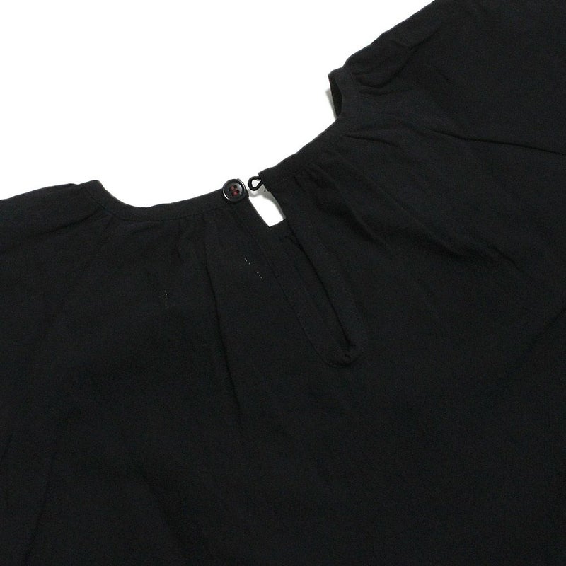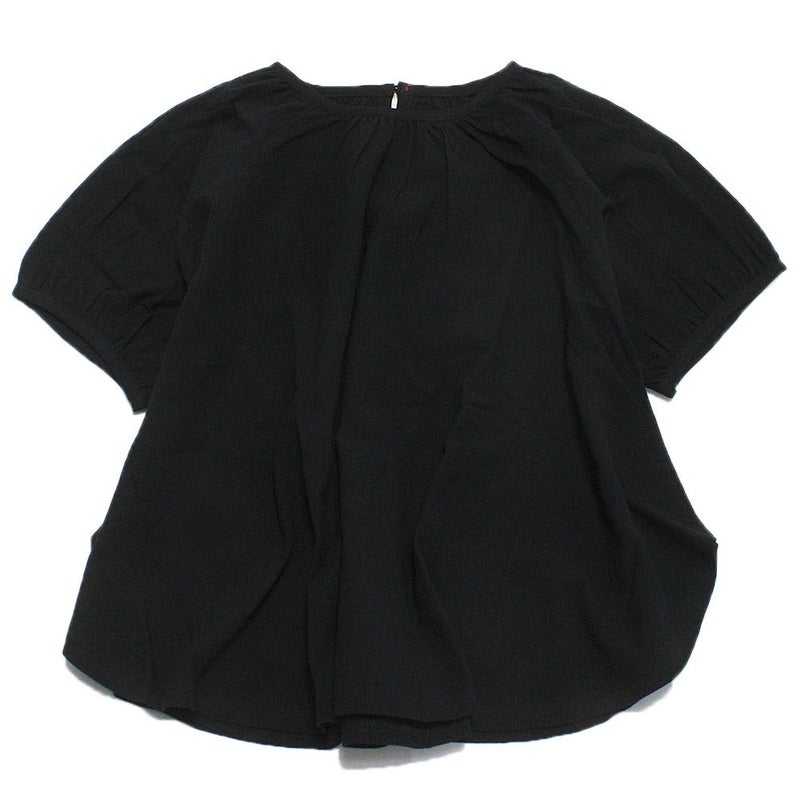 丸みを帯びたシルエットに、首元にギャザーを寄せることで全体的にボリュームを出した一点。