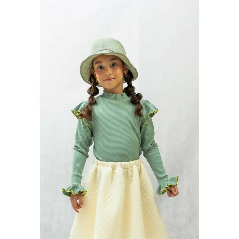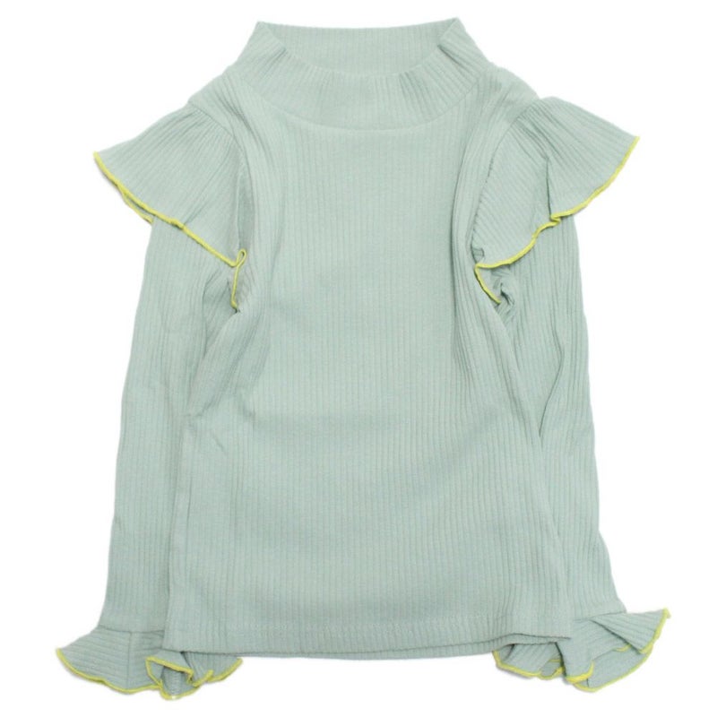 肩と袖のフリルがポイントのリブロンT。