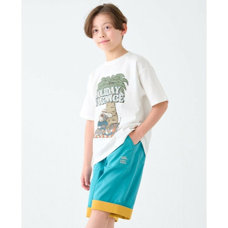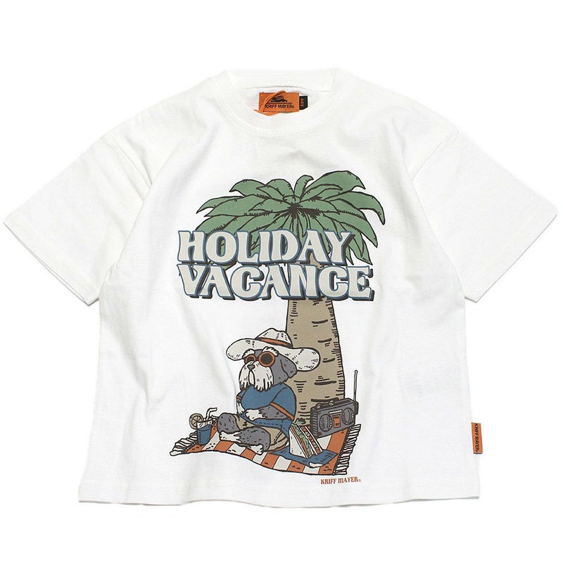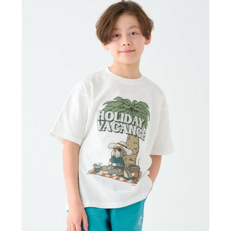 ビーチでくつろぐミニチュア・シュナウザーの愛らしいプリントに目をひかれる1枚。