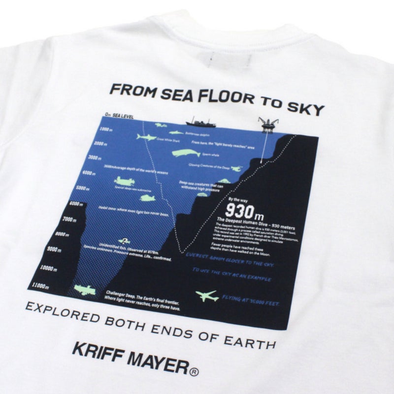 暗闇に包まれた深海11,000メートルから飛行機が飛ぶ上空10,000メートルまでを1枚に描いたグラフィック。