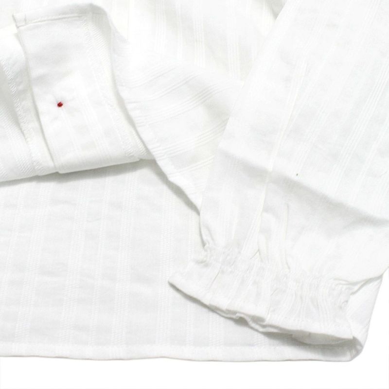 大きめの白い襟は顔回りを華やかに。