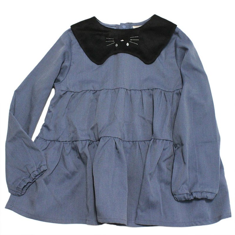 4. [ラ ポシェ ビスキュイ] ネコ襟チュニックブラウス ネイビー(NB)