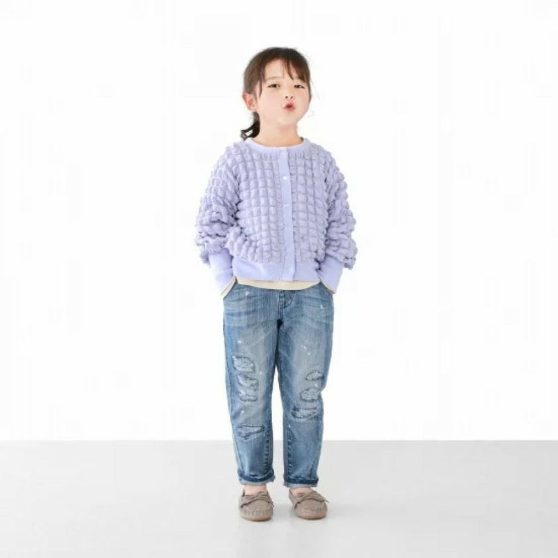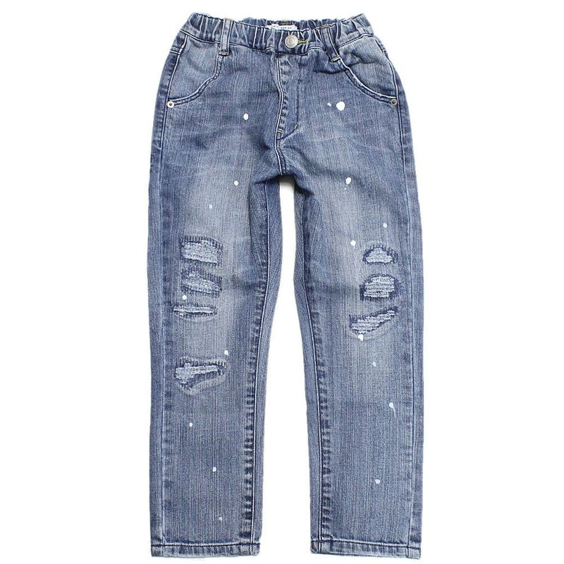 ダメージ加工が施されたデニムパンツ。