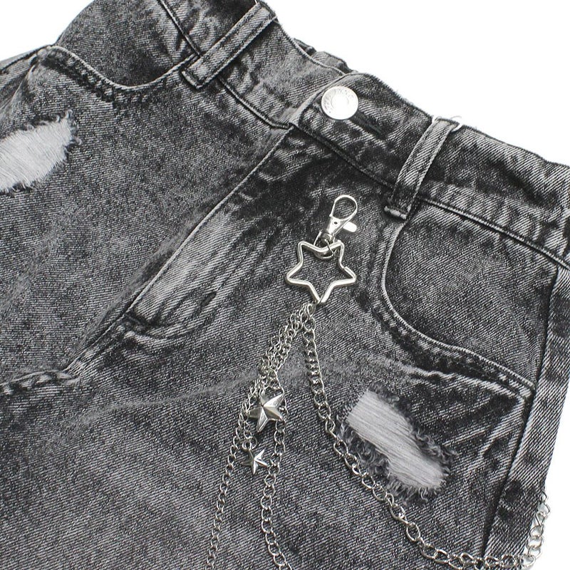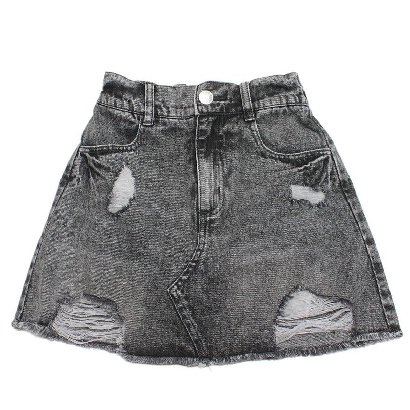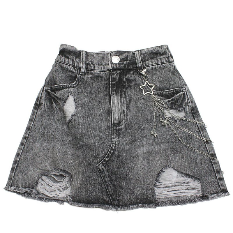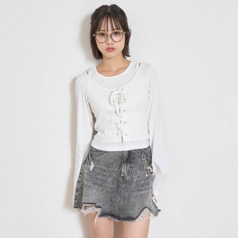 6. [ラブトキシック] チェーン付ダメージデニムミニスカート グレー(82)