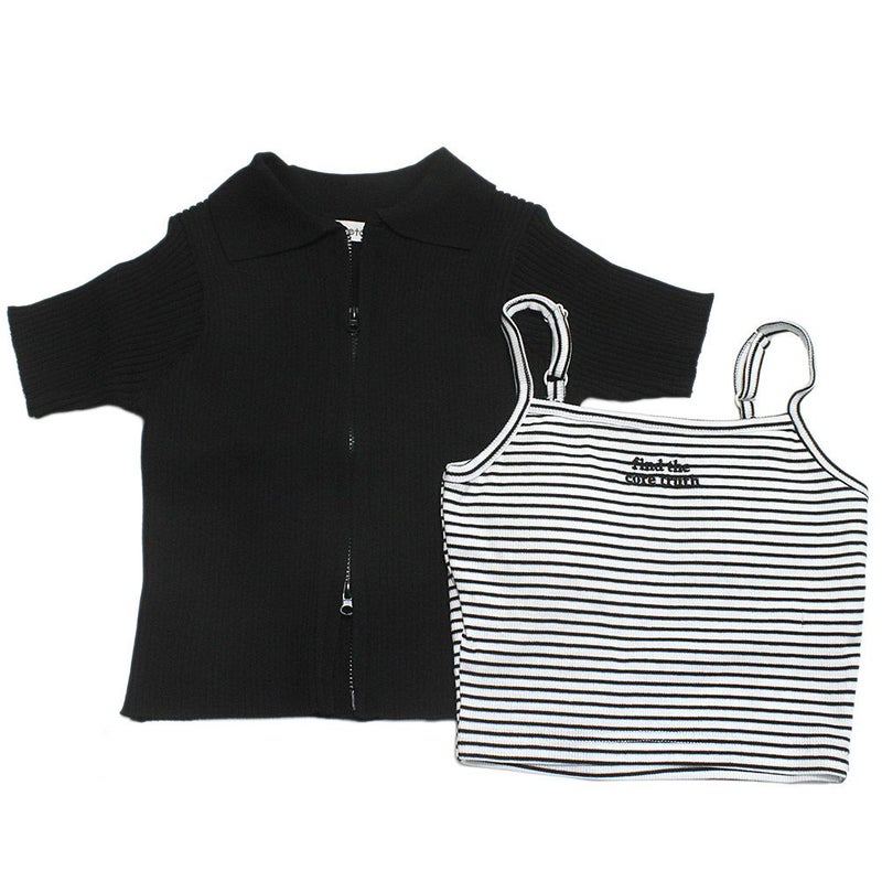 5. [ラブトキシック] インナー(キャミソール)付ZIPカーディガン クロ(80)
