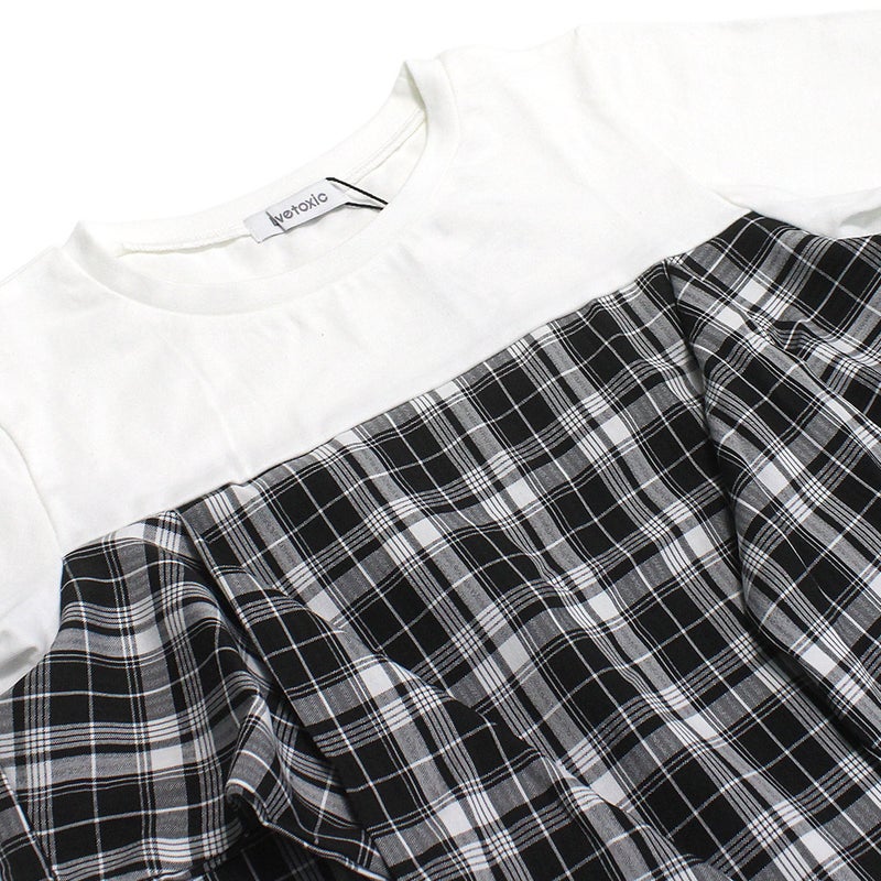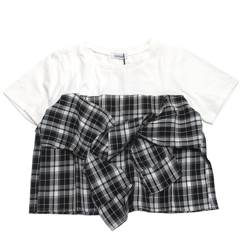 “ラブトキシック”のベアスリーブチェックドッキング半袖T