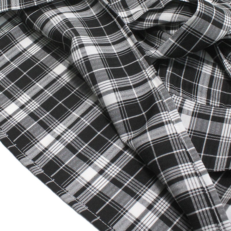 チェック柄のベアトップを重ね着しているようなデザインがポイント。