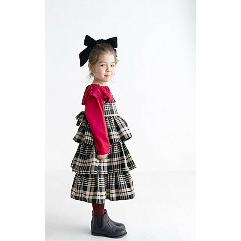 落ち着いた配色のチェックがシックなティアードジャンパースカート。