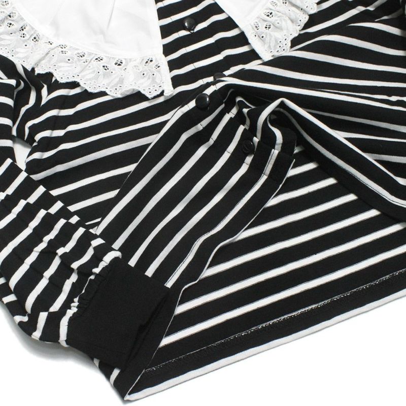 2配ボーダーにレースのBIG衿が印象的なカーディガンです。
