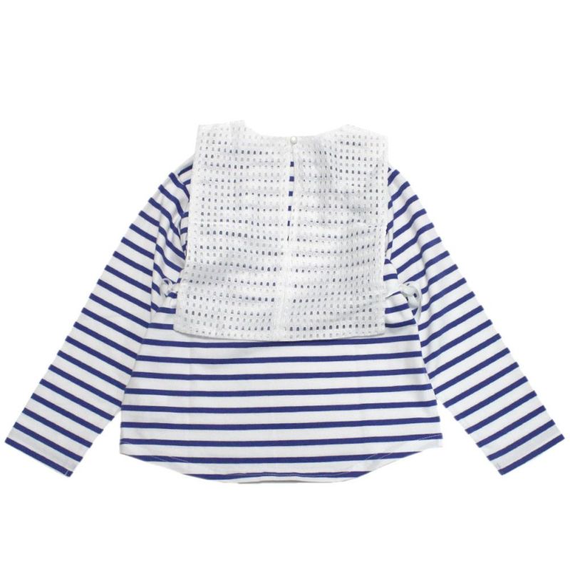 “マルーク”のマリンボーダーメッシュ衿付きTシャツ