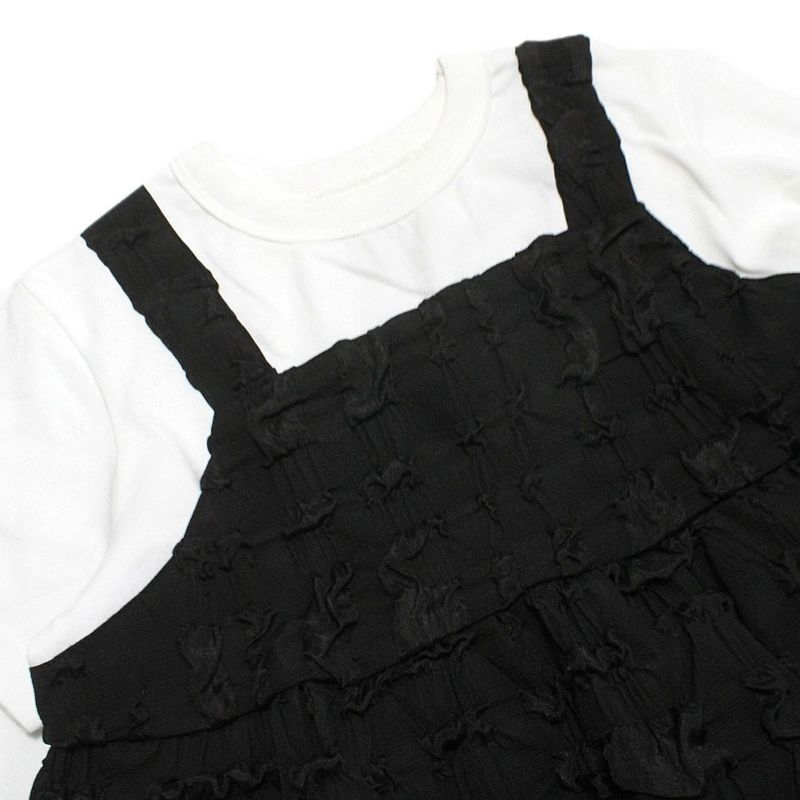 ぽこぽこチェック柄のふくれジャガードのキャミソールをレイヤードしたTシャツです。