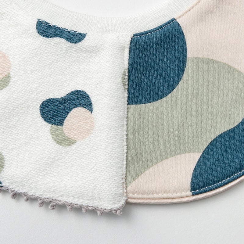 スウエット生地の表と裏やキッチュなループ、上品なサテンのパイピング。