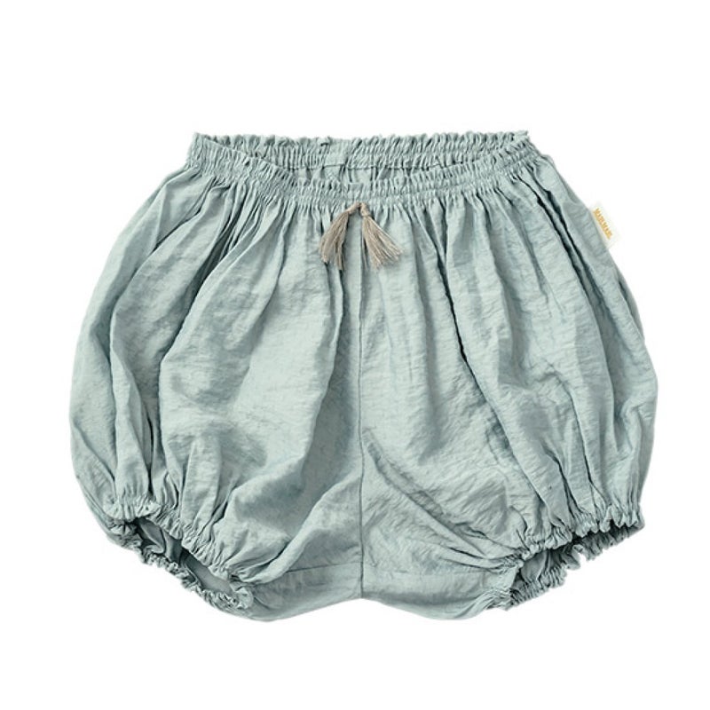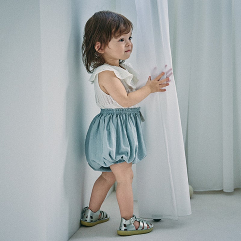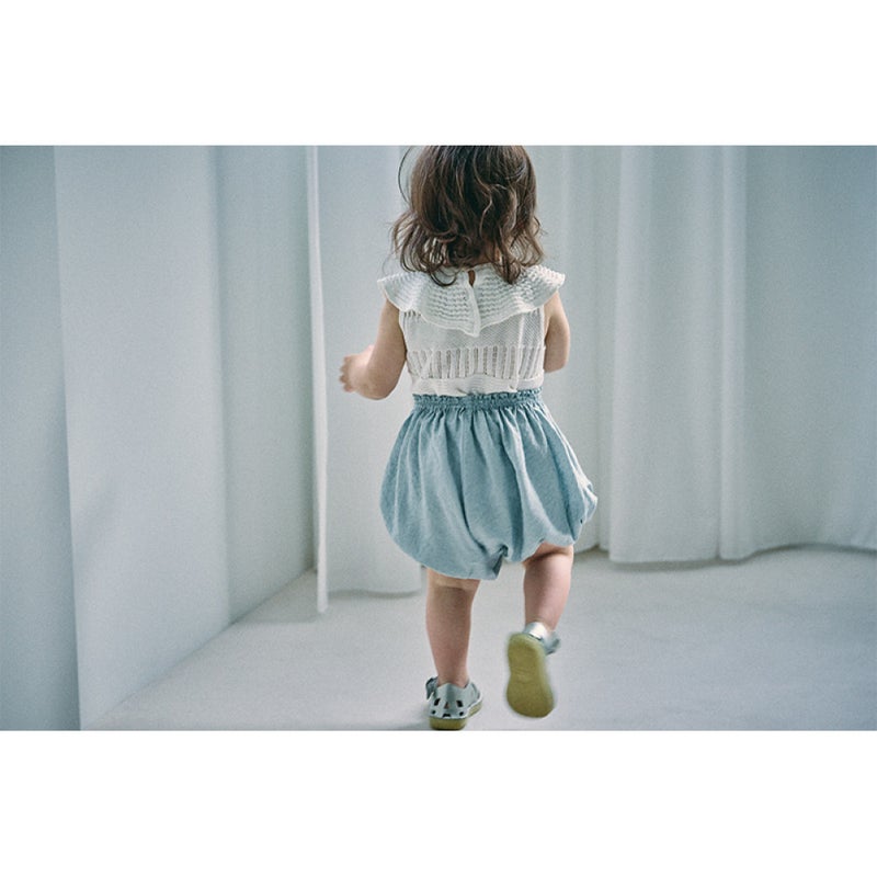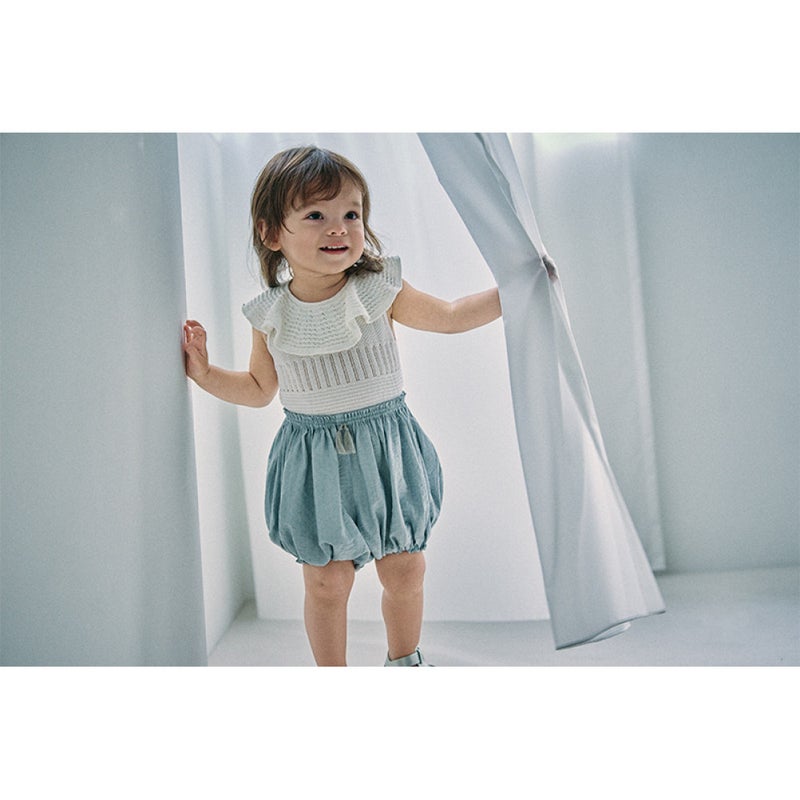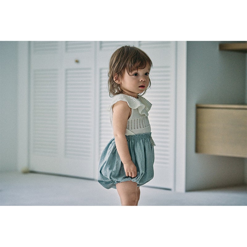 繊細な生地と爽やかなダスティブルーが映える“まあるいブルマ”です。