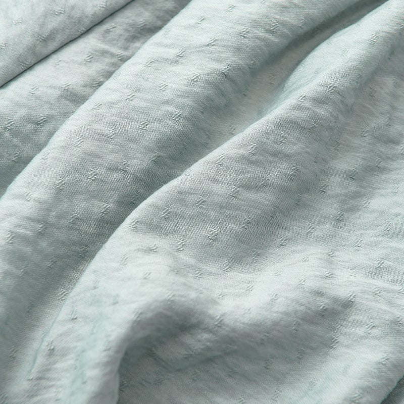 爽やかな印象のくすみブルーに、さりげない織り柄が特徴生地を使用。