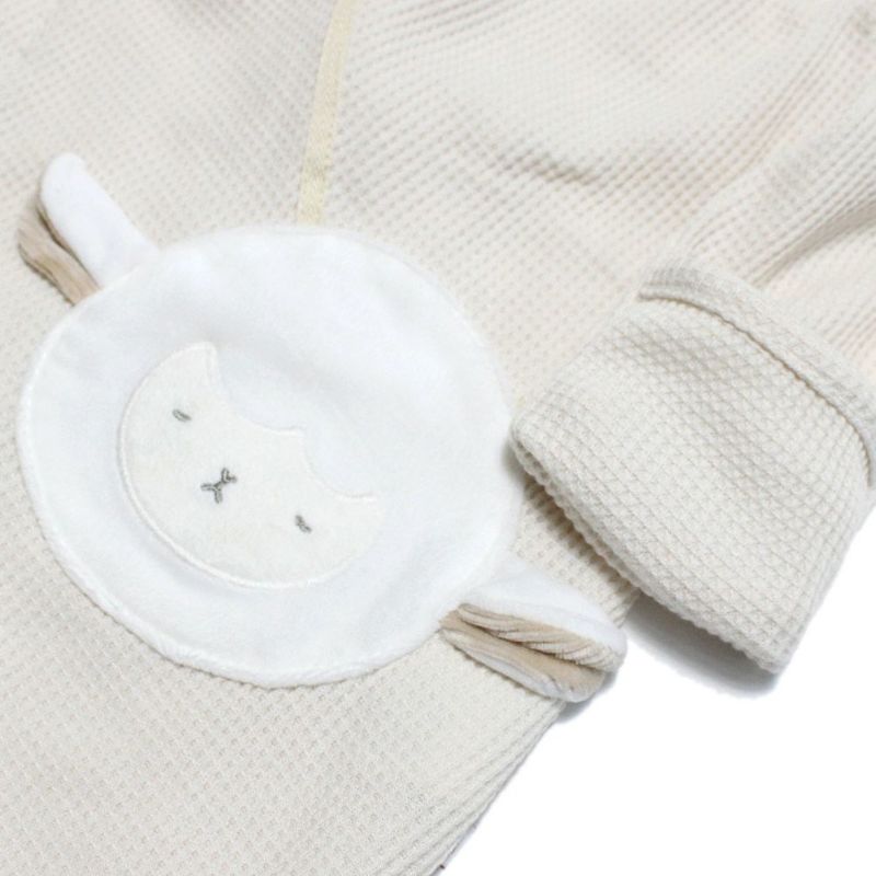 肌あたりの優しいワッフル地を採用したベビーロンパース。