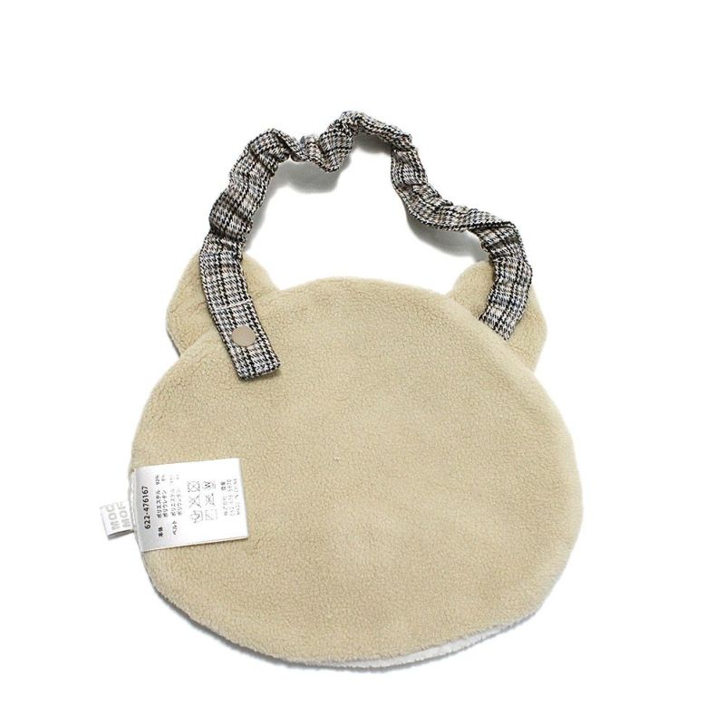 温かみのあるボア素材とチェックのストラップが優しい印象。