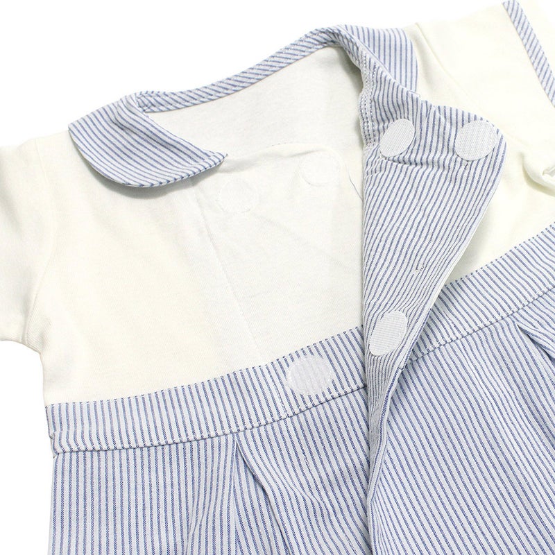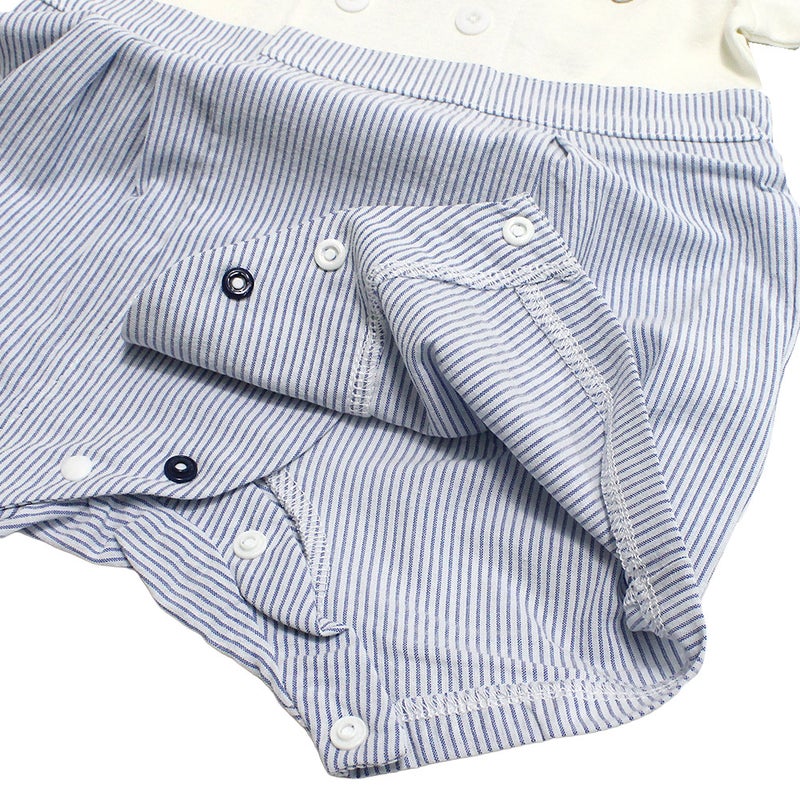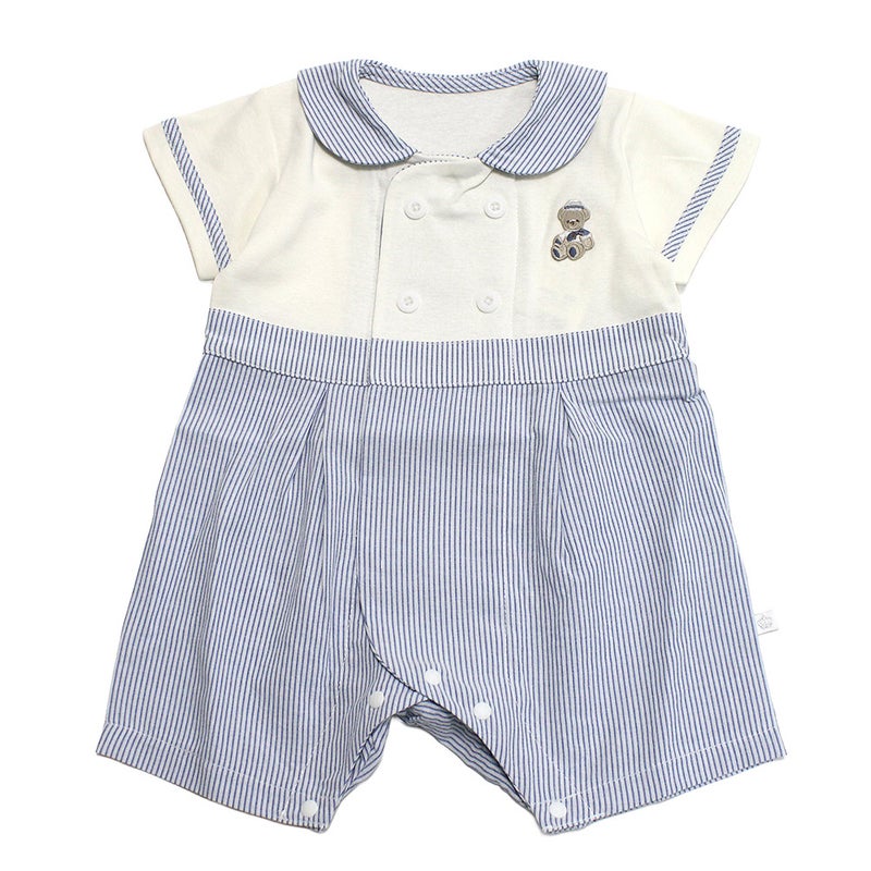清涼感のあるボーダー柄が爽やかな印象のロンパース。