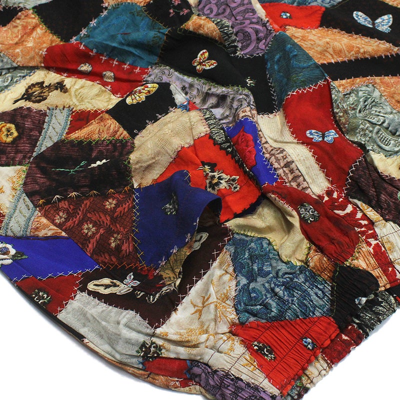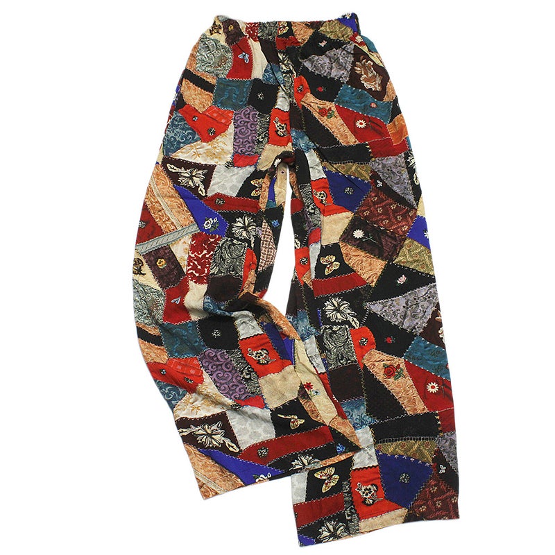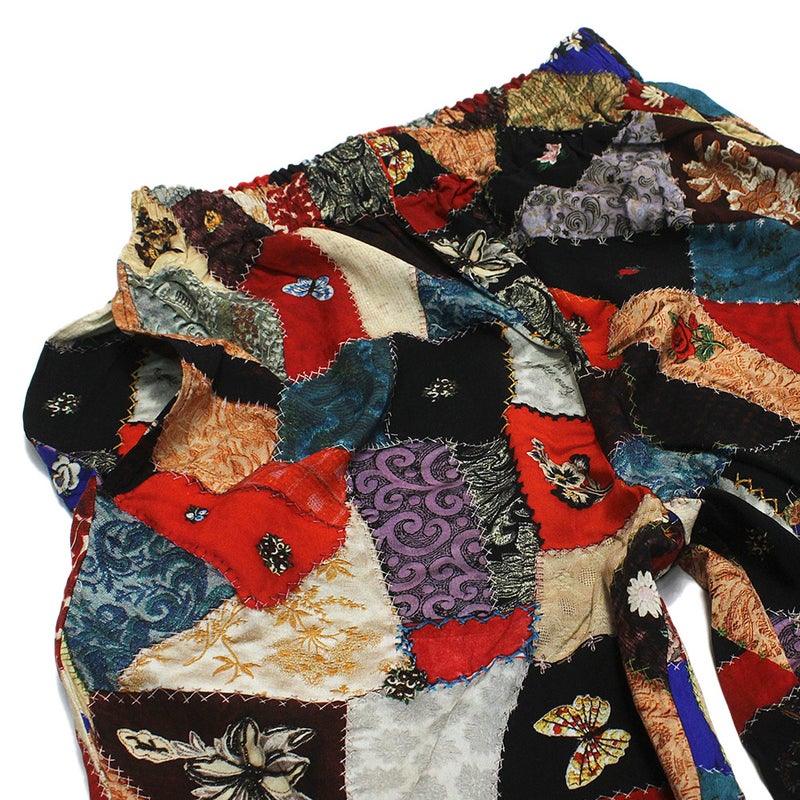 アンティークのクレージーキルトをリアルにプリントしたロングパンツ。