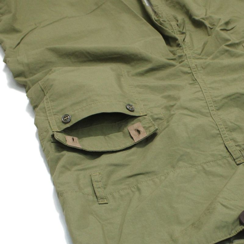 ミリタリーアイテムを意識した丈夫な綿ナイロンの交織のウェザーを使用。