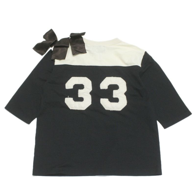 4. [マレ] フットボールリボンT(7分袖) ブラック