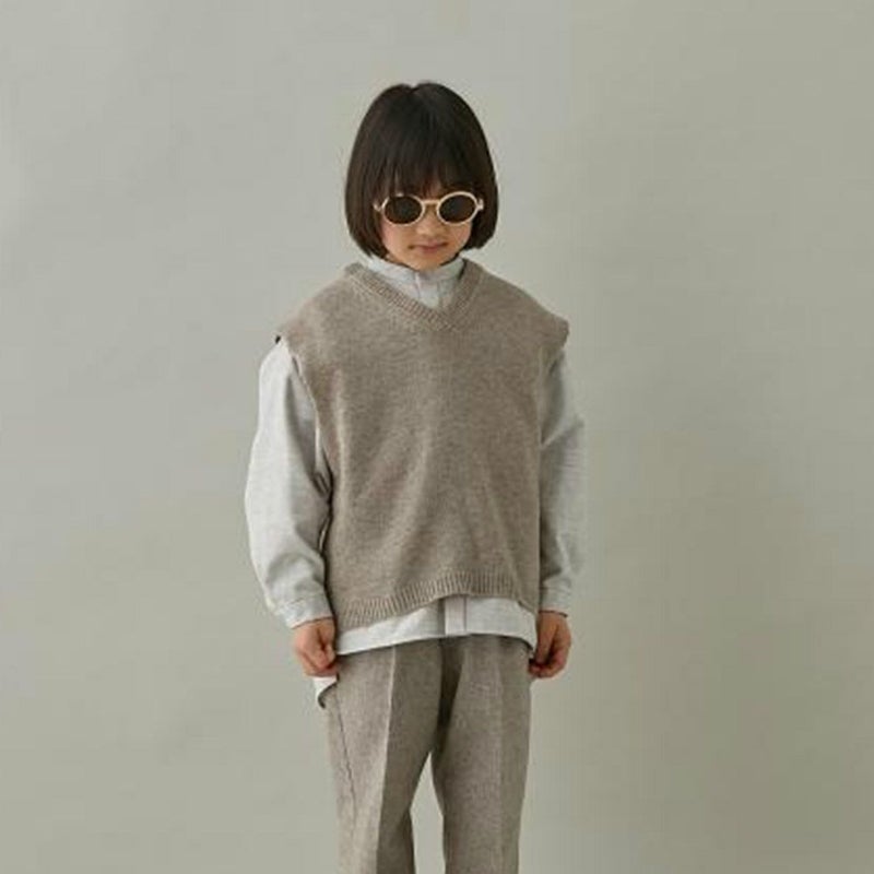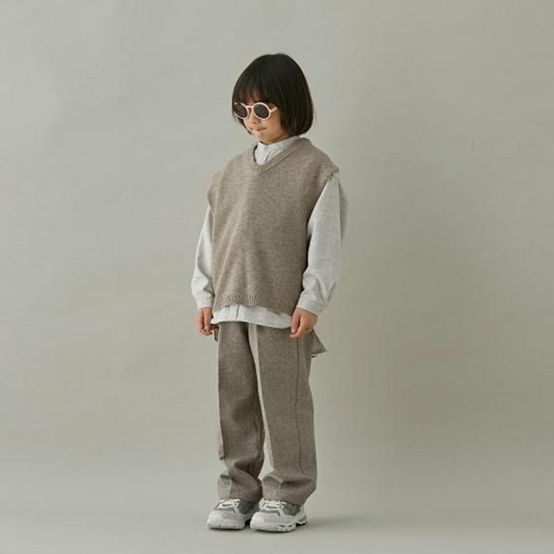 スクールテイストのニットベストを、ミニマルなデザインで、ゆったりとしたオーバーサイズに。