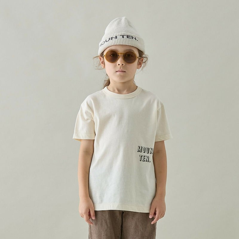 左脇にポップなMOUN TEN.のロゴが入った、スタンダードなTシャツ。